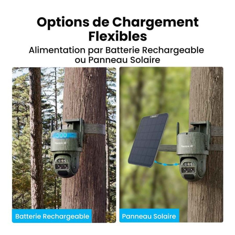 Le Reolink Trackmix Series G770 peut également être connecté à un panneau solaire Reolink Solar Panel 2 de 6W pour une alimentation ou une protection continue, offrant ainsi une solution respectueuse de l'environnement grâce à l'énergie solaire.