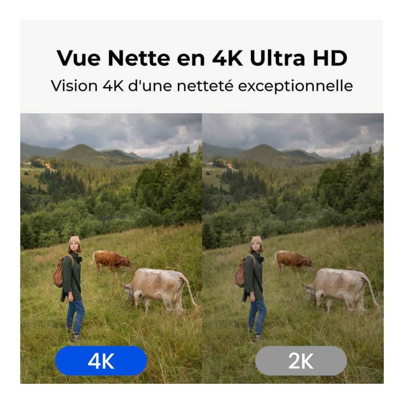 Caméra 4G 4K à double objectif avec zoom automatique, suivi intelligent des mouvements, vision nocturne couleur et détection des personnes, véhicules et animaux.