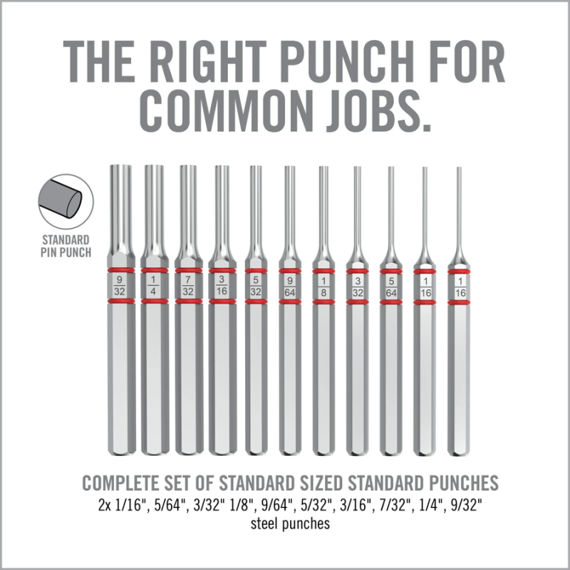 Les chasse-goupilles sont en acier trempé avec un placage en nickel pour résister à la corrosion.