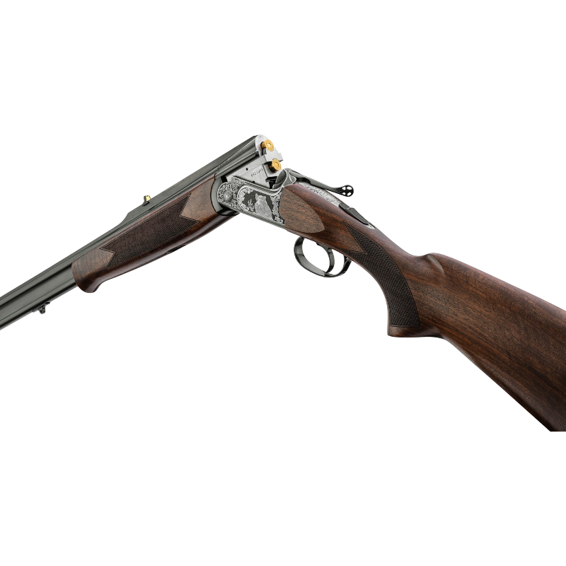 Conçue pour les chasseurs de grand gibier, elle offre une précision exceptionnelle grâce à ses canons de 55 cm, le tout dans un design luxueux et d'élégantes gravures artisanales.