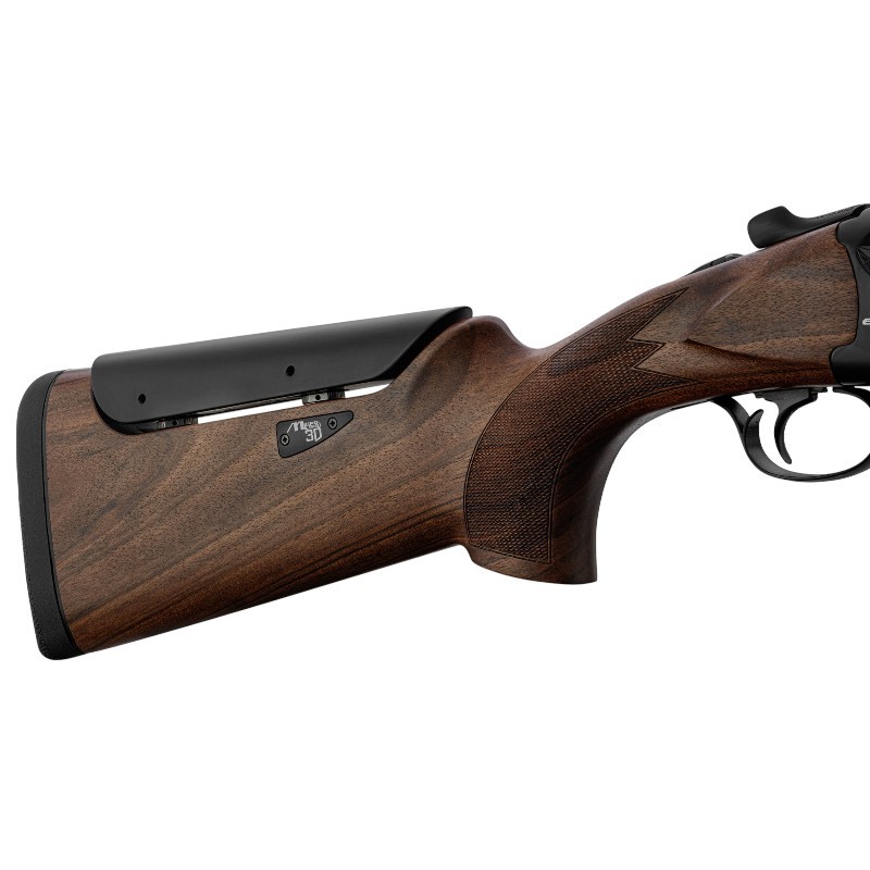 Cette version RS s’adressant à des tireurs experts, elle possède un canon TRIBORE HP foré dans la masse, des chokes hyperboliques de 97 mm, une queue de détente réglable, un busc ajustable et une très élégante gravure avec logos bi-tons.