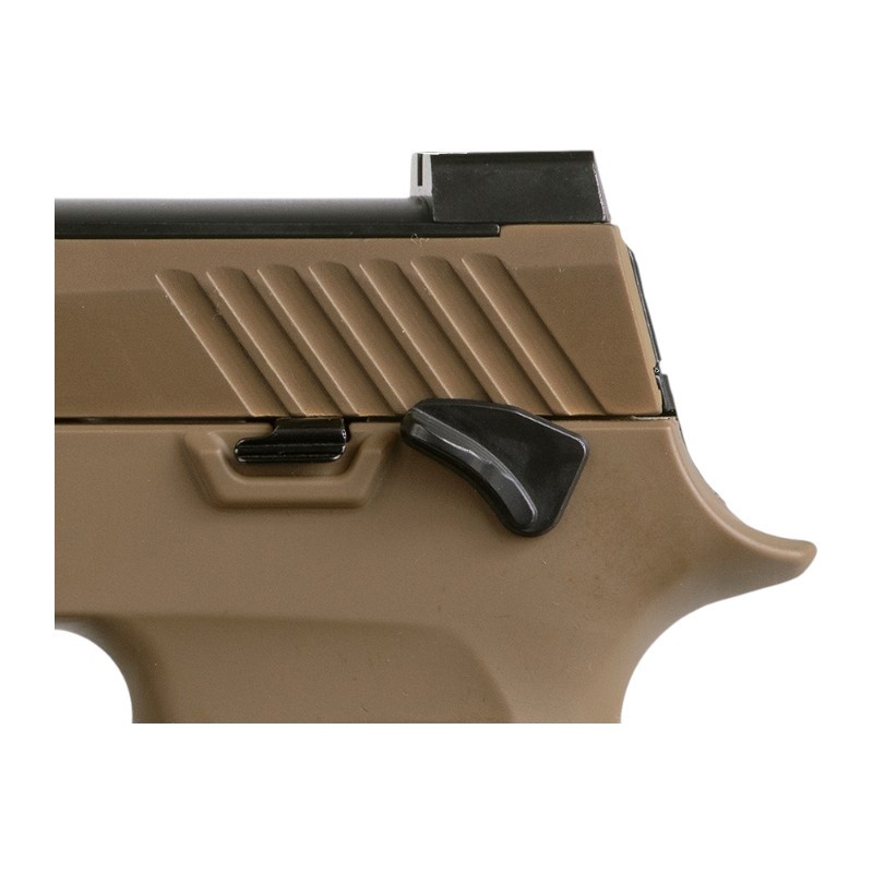 Le pistolet est doté d'une glissière en acier inoxydable revêtue de PVD coyote et de la coupe optique identique à celle spécifiée dans le contrat MHS, ainsi que de commandes noires, à l'instar des pistolets actuellement expédiés à l'armée américaine; il est équipé d'un guidon SIGLITE et d'une hausse Night Sight.